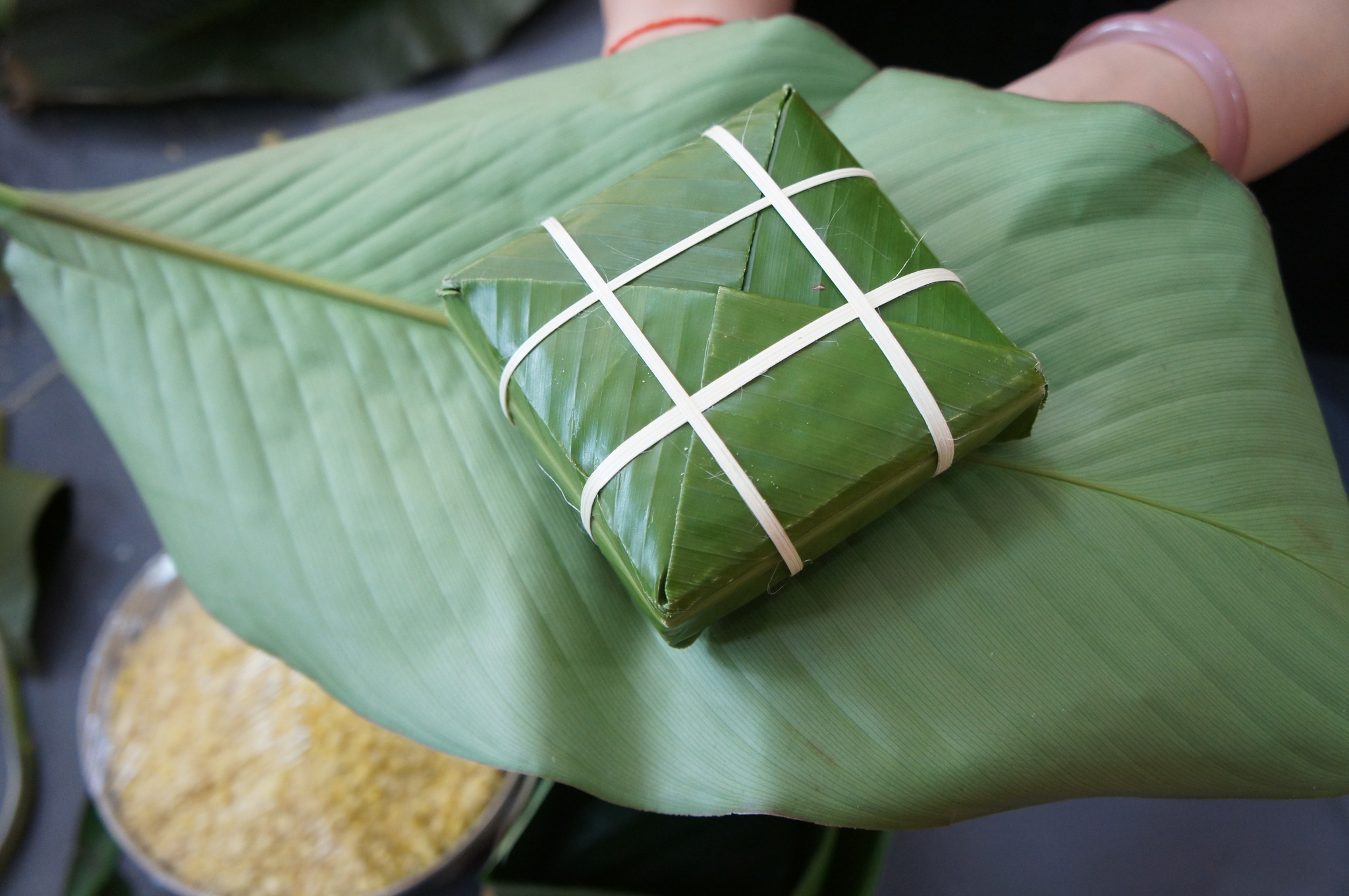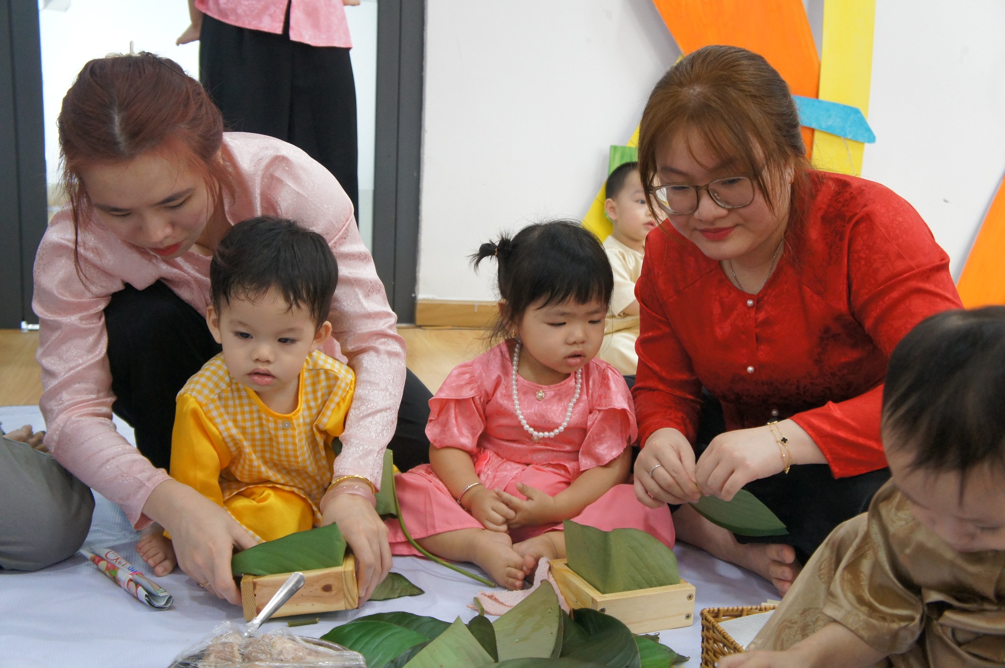 • Đánh thức đa giác quan: Trẻ được cảm nhận mùi thơm của lá dong tươi, màu trắng của gạo nếp, màu vàng của đỗ và độ nhám của sợi lạt tre.