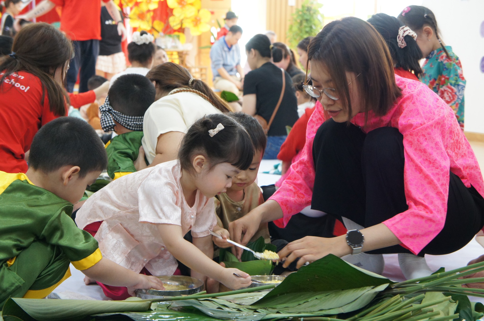 Bé Trải Nghiệm Gói Bánh Chưng: Khơi Dậy Mỹ Tục Tết Việt